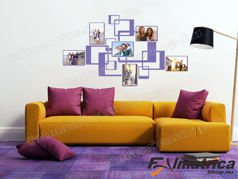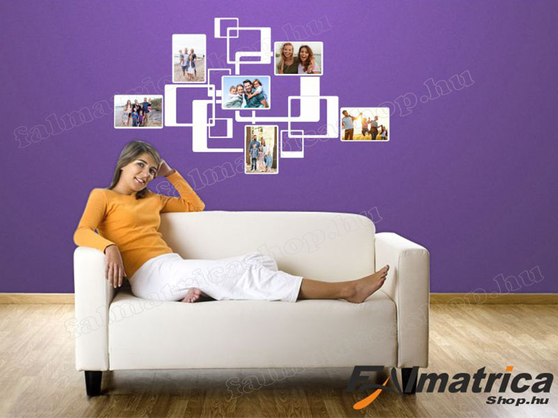 Ez a modern hatású falimatrica összesen 6 képkerettel áll készen a legszebb családi pillanatokra. A keretekre saját fotókat lehet ragasztani, például kétoldalú ragasztóval.